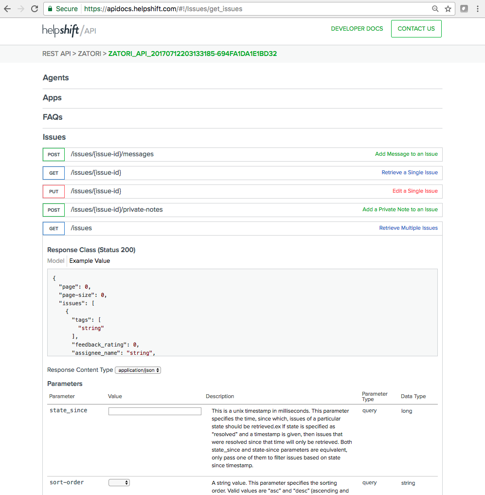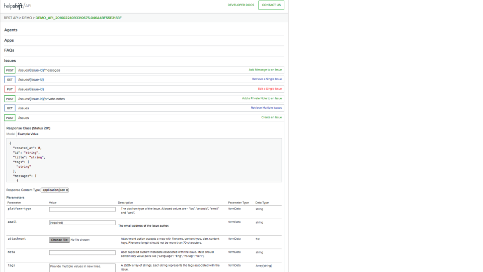 Exploring the REST API with Helpshift's 'API Docs' tool