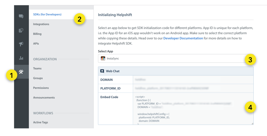 YOUR_DOMAINwith your Helpshift domain. For example, happyapps if your dashboard sits at happyapps.helpshift.com - Replace